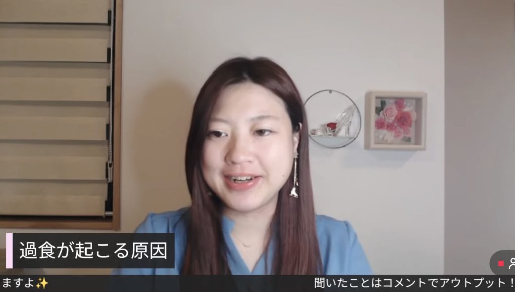 今日は「食べ過ぎをコントロール!過食が起こる理由を徹底解説」というテーマでライブが行われました。